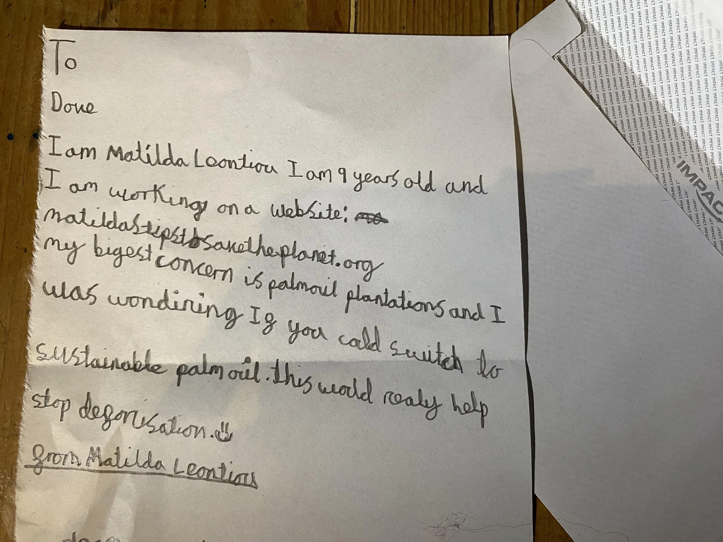 Maybe write a letter to manufacturers to ask them why they are not using sustainable palm oil. Or write a letter to the government to ask them to stop.